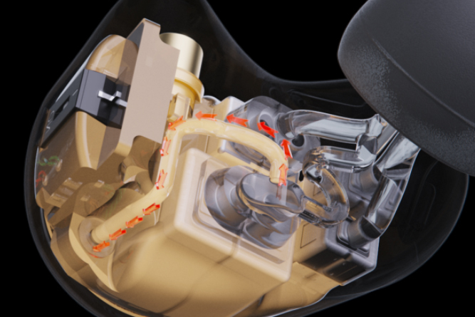 1つ目の「ネガティブ・フィードバック低域向上システム」は、低域用ドライバーが発する低周波をシェルの背面まで誘導。共鳴周波数を下げることで、より一層深い低域が味わえるという。また、このシステムは外耳道内の空気圧を緩和するため、耳にかかる負担を軽減し、サウンドステージを広げる役割も果たすとのこと。