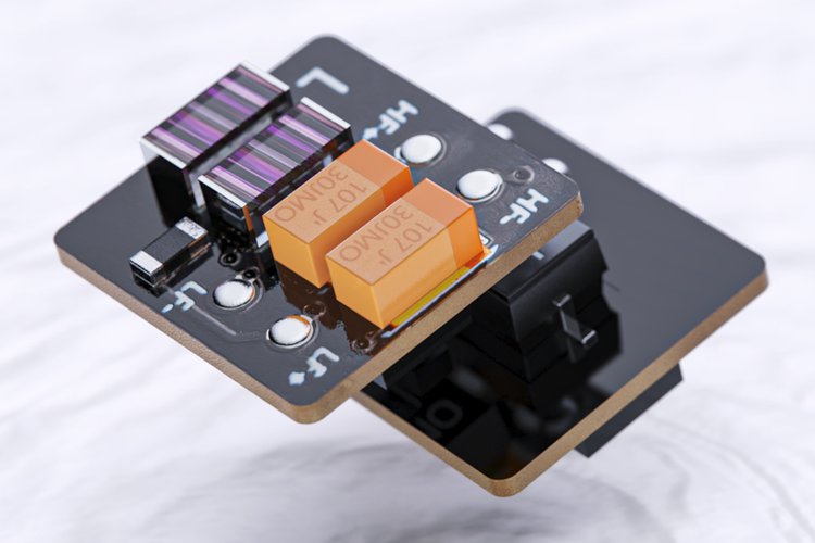 各ドライバーの再生周波数帯域を振り分けるクロスオーバーネットワーク回路には、性能のバラつきが少ないメディカルグレードのルビコン製フィルムコンデンサーを採用。音質への悪影響を抑えて正確な帯域分割を実現し、明瞭感に優れた正確な音再現を可能にしたとする。