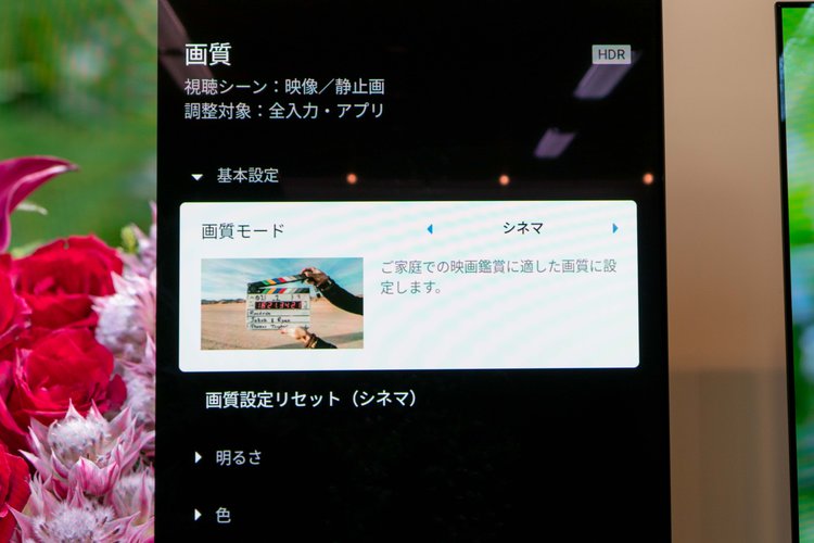 「Prime Video画質モード」は、映画コンテンツだけでなく、スポーツ中継といったコンテンツでも、視聴環境に応じて最適な画質設置に調整してくれるという。「SONY PICTURES CORE画質モード」は明るさ設定が固定となっている。