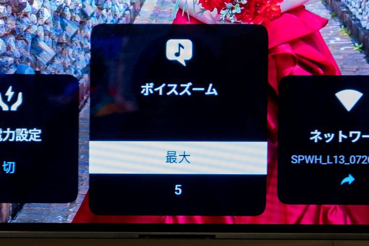 音質面では、AIサウンドセパレーション機能によって、人間の音声のみを正確に抽出するという「ボイスズーム 3」を搭載。さまざまな音が混在しているシーンでも、全体の音量は変えずに声だけ音量調整することが可能で、さらに今回からはサウンドバーと接続時も使えるようになった。
