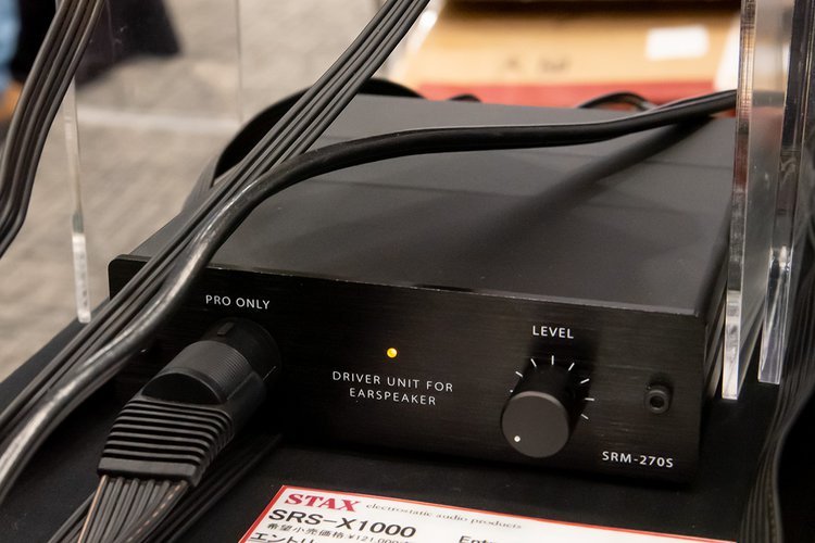 STAXブースでは、5月に発売された静電型ヘッドホンの新エントリーモデル「SRS-X1000」を中心に、既存のアイテムを一挙出展。SRS-X1000は、同社の“静電型イヤースピーカー”の「SR-X1」と、専用ドライバーユニットの「SRM-270S」を組み合わせたセットモデルとなっており、もちろんブースではその組み合わせでの試聴が可能。本モデルを目当てにブースに訪れる方も多く見受けられた。