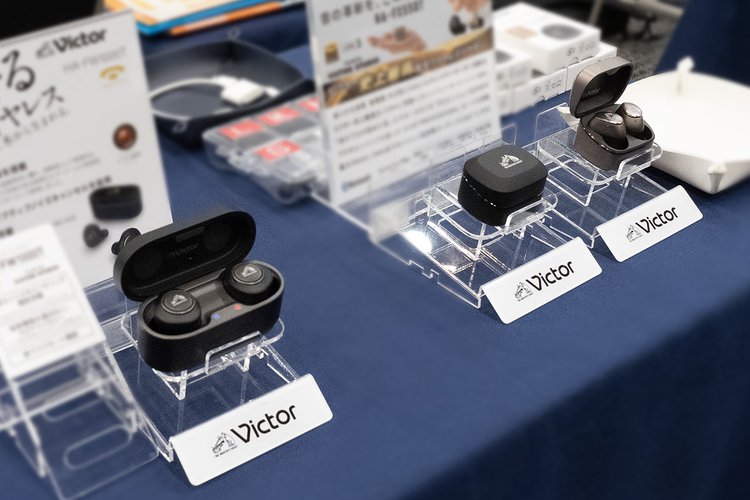 JVCケンウッドはビクターブランドから、完全ワイヤレスイヤホンを中心に、有線イヤホン、ワイヤレススピーカーなどを展示している。