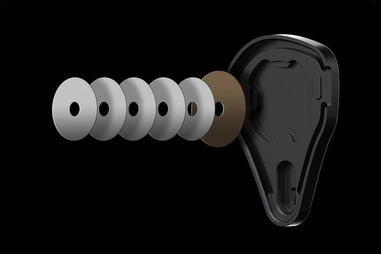 筐体は樹脂3DプリントとCNC金属加工技術を採用した黒色半透明樹脂シェルと、つやけし金属フェイスプレートを採用。樹脂チャンバーとメタルフェイスプレート内の微妙な凹凸が定在波を効果的に抑制し、サウンドボトムをよりピュアにする効果があるとした。