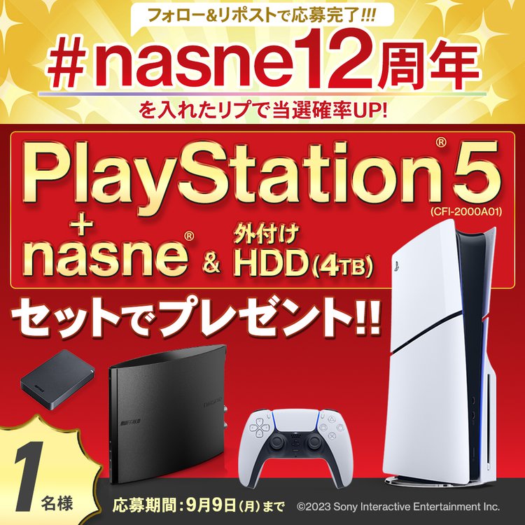 バッファロー、PS5とnasneの豪華セットが当たる「nasne誕生祭2024プレゼントキャンペーン」