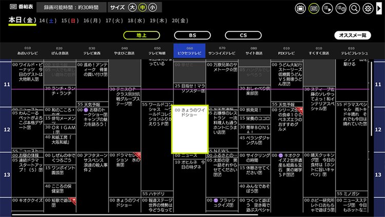 視聴アプリでは、テレビ番組表からの録画予約や、タレント名などのキーワード録画予約に対応。また再生機能として、0.8/1.2/1.5/2.0倍の倍速再生や、録画番組の区切りを自動で検出して頭出しするオートチャプター、スポーツ番組のハイライトを自動的に表示するダイジェスト再生、見たいシーンを直感的に探せるサムネイル付きシークバーなどを備える。