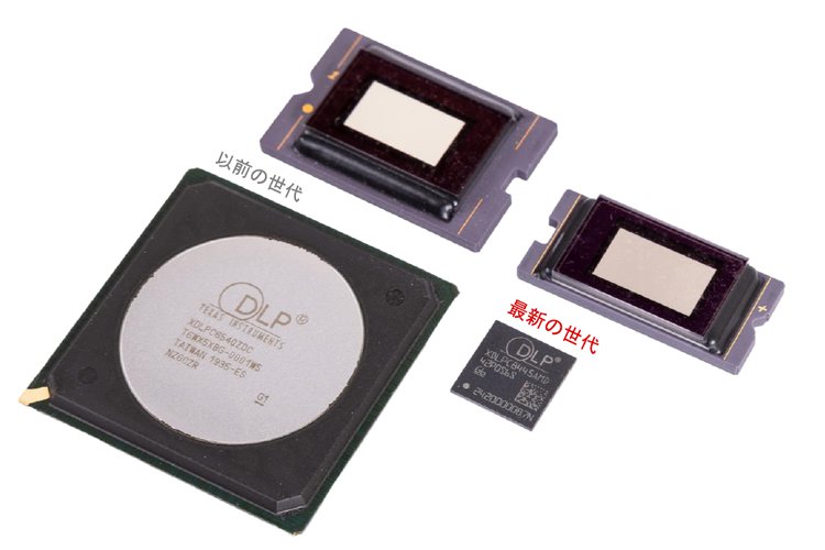 DLPC8445は、前世代の4K DLPディスプレイコントローラーと比較して約90%ものパッケージサイズ小型化を実現。従来のサイズは31mm×31mmであったが、DLPC8445は9mm×9mmとしている。ホームプロジェクター/ゲーミングプロジェクターやARグラスなどに搭載することで、製品のさらなる小型化に繋げられると説明する。
