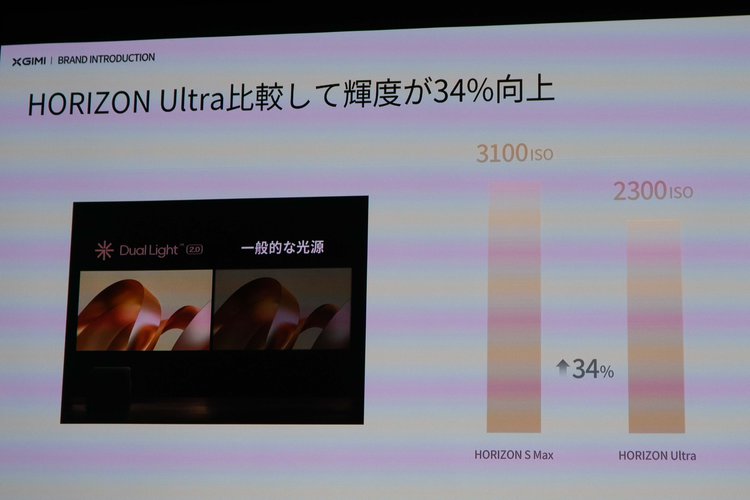 ブランドの最高峰モデルとして位置づけられる “HORIZON Sシリーズ” では、独自の光源技術の最新世代版である「デュアルライト2.0テクノロジー」が搭載されていることが最大の特徴だ。XGIMIは、HORIZON Ultraでレーザー光源とLED光源を組み合わせた業界初の独自新技術として「デュアルライトテクノロジー」を搭載していたが、「デュアルライト2.0テクノロジー」に進化したことで、眩しさやチラつきを低減し視聴の快適さを確保しながらもより明るい映像を叶え、高輝度/広色域/高色精度において卓越した高画質映像を実現するという。