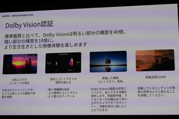 HORIZON S Max/HORIZON S Proの両機とも、HDRフォーマットはDolby Vision/HDR10/HLGに対応しており、最新のHDRフォーマットを業界一幅広くカバーしている。Dolby Visionでは、豊かな色彩と高いコントラスト、映画製作者/クリエイターが作り込んだ画を楽しむことができる、没入感に優れた映像が特徴だとしている。