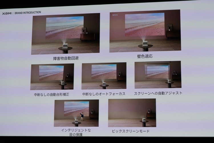 「ISA 5.0」では、中断なしの自動台形補正/中断なしのオートフォーカス/スクリーンへの自動アジャスト/障害物自動回避/アイプロテクション/壁色自動適応といった従来機能に加え、新たに「ビッグスクリーン」機能が採用され、全7つの機能が使用可能となった。