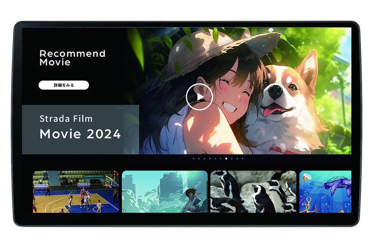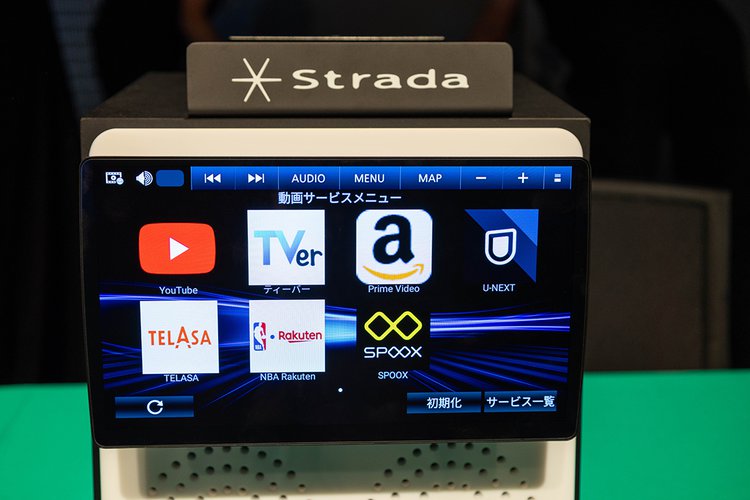 ナビ画面のサービス一覧に表示されるサービスを選択し、ログイン等を行うことで再生が可能になる。これまでもスマートフォンと接続して再生することはできたが、そうするとスマートフォンの通知もすべて画面上に表示されてしまうなどの課題があった。今回のモデルでは、ストラーダ本体で配信サービスからの動画を受け取る形となるため、前述のようなスマートフォン操作にともなう煩わしさからは解放されることになる。なお、今回の4モデルはいずれもディスクドライブは非搭載。