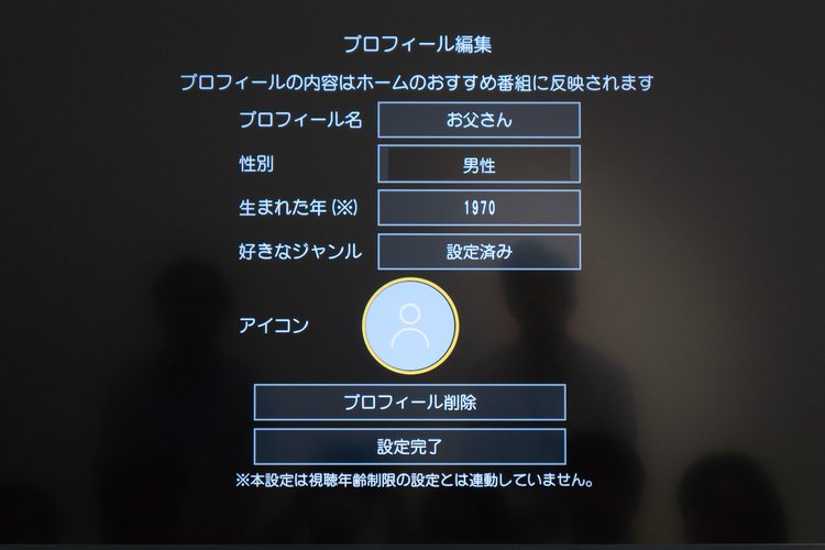 新たにプロフィール登録ができるようになっており、家族でレコーダーを共有しながらも、ユーザー毎に使い分けすることができるようになった。プロフィール登録は最大6名まで可能。例えば、お父さん/お母さん/お兄さん/お姉さんといったように家族でプロフィールを分けることができ、先述した「表示項目のカスタマイズ」もプロフィール毎に設定可能だ。