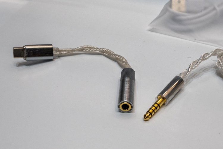 改良されたチャンバー設計や交換式ノズルの採用などフィーチャーは多いが、注目は4.4mmからUSB Type-Cに変換するケーブル「ECHO-B」を同梱したこと。こちらは384kHz/32bitのデコードができるほか、同社の「Moondrop App」アプリを通じてイコライザー機能も使え、さらにそのイコライザーの設定情報をアプリでシェアすることもできるという。標準でLitz線の銀メッキ単結晶銅素材の4.4mmバランスケーブルと3.5mmのアンバランスケーブルも付属する。