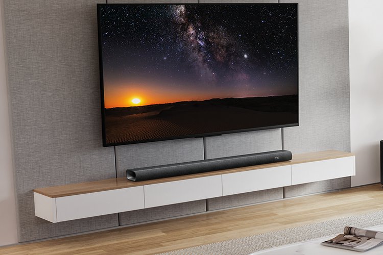 同ブランドならではのインテリアにも溶け込む上質なデザイン性と、合計11基の内蔵スピーカーにより5.1.2chの立体音響再生まで対応するオーディオ性能を両立したとするサウンドバー。