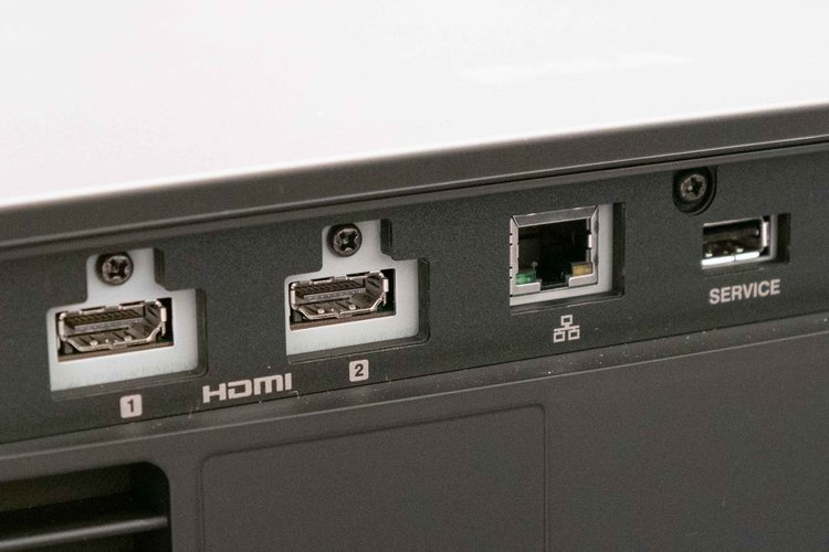 主な入力端子としてHDMI×2基(HDMI 2.1/HDCP 2.3 32Gbps)、USB Type-A×1基(ファームアップ用)、LAN×1基を搭載。最大入力信号は4K/60p(1080i入力は非対応)まで、3D出力は非対応としている。
