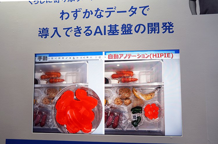 本技術の開発活用例として冷蔵庫を挙げ、従来までは庫内の野菜を認識する学習データを手動で構築していたところ、HIPIEを活用することで現場ごとの学習データを構築せずに画像認識が可能。これにより、多様な暮らしや現場ごとのデータ構築作業を省き、チューニングコストを削減できるのだという。