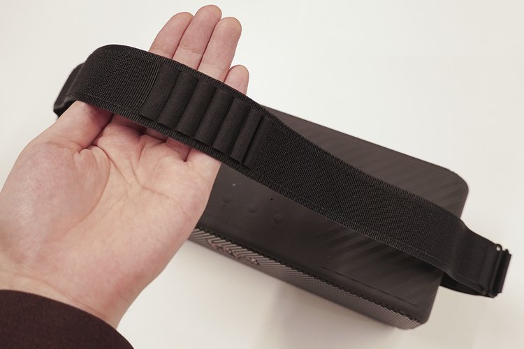 持ち運びやすい小型設計に加え、バッグや自転車のハンドル本機をは取り付けられるストラップを機体背面に装備。BBQやサイクリングのときでも手軽に迫力のある音楽を楽しむことができるとアピールしている。