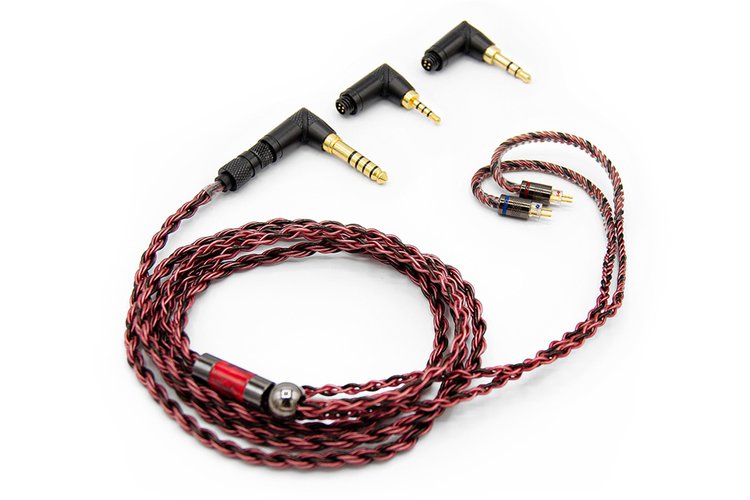 RUBEUSシリーズは、超高純度6N OCC(単結晶無酸素銅)線/高純度4N銀メッキ銅線による8芯構造。ボーカル帯域から中低域を中心に、音質を豊かでダイナミックに強化し、透明感と音場の広がりを高める音質傾向としている。