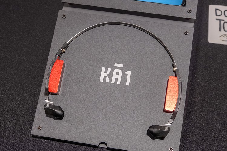 また、開発中だというヘッドバンド型のセミオープンイヤホン「KA-1」の試作品も参考展示。試聴などはできない状態なものの、MMCX端子と2pin端子を両方備えていたり、先端のイヤホン部分を取り外して付け替えられたりと、見た目以上にユニークなイヤホンのようだ。