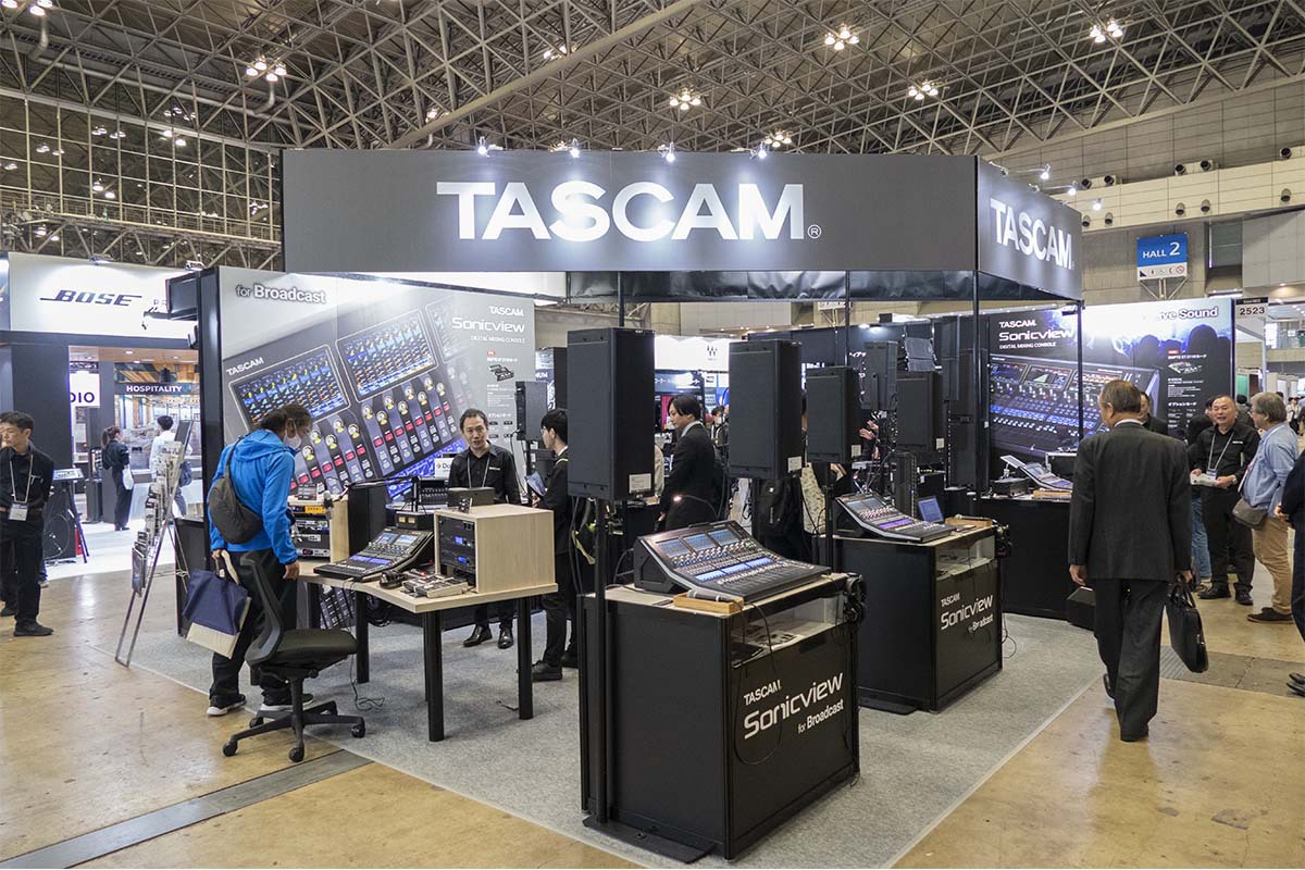 タスカム/ティアックブース(ホール2・2523)ではTASCAM(タスカム)ブランドのデジタルミキサーやポータブルレコーダー、設備用ミキシングアンプなど多数の製品が出展されている。