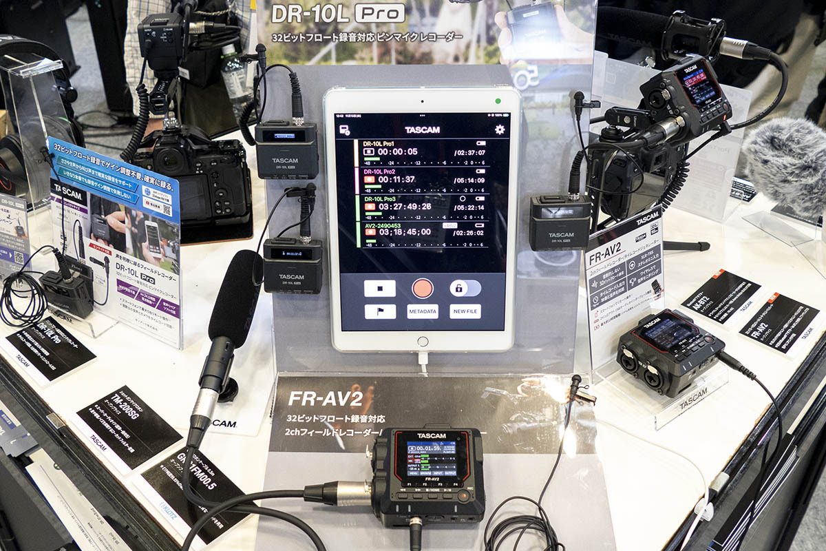また、アプリ「TASCSM RECORDER CONNECT」で最大5台のピンマイクレコーダーと組み合わせて同時操作することが可能で、最大今回の展示では、ピンマイクレコーダー「DR-10L」と組み合わせたシステムを用意。操作感を実際に体験できるようになっている。