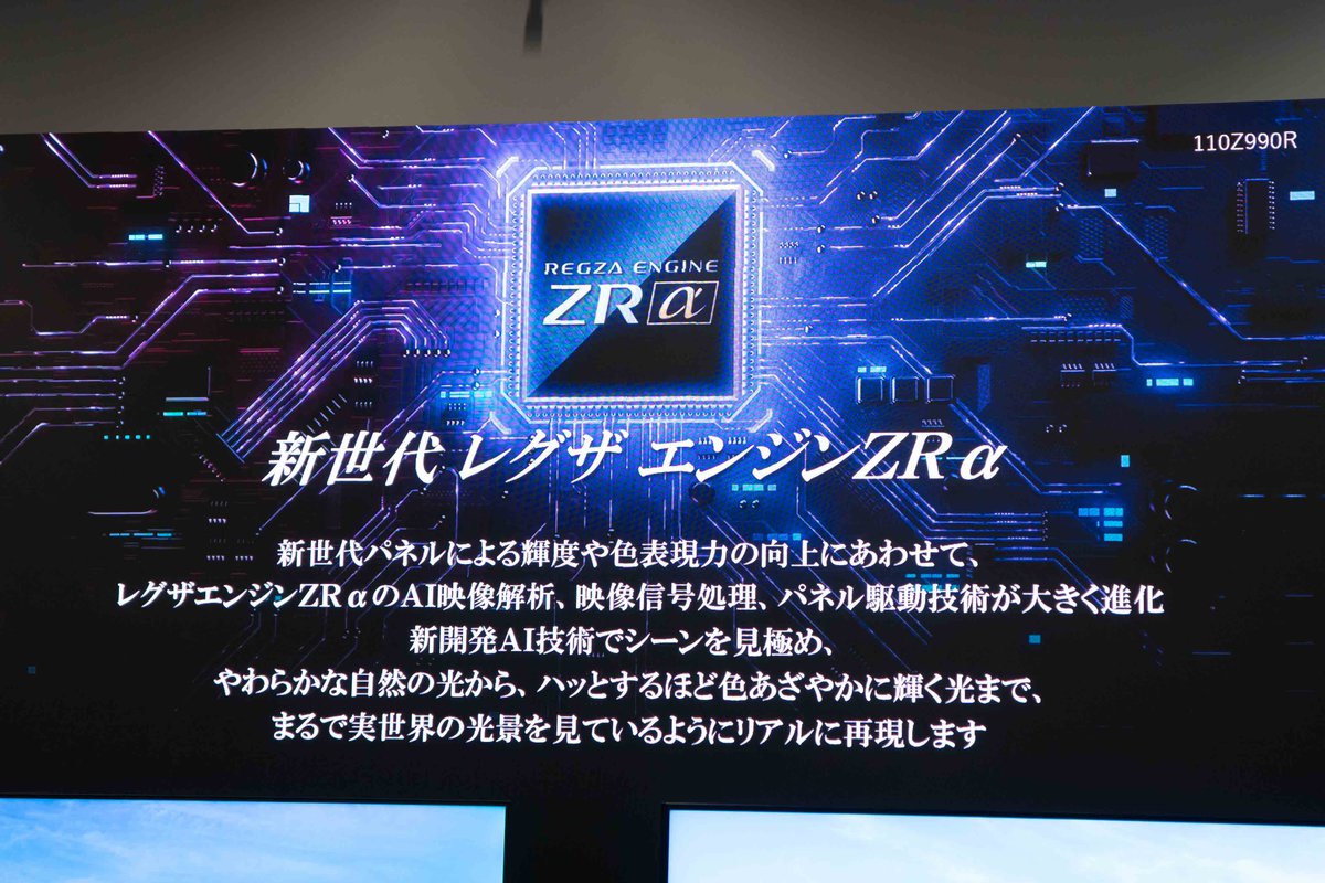 110Z990Rは、レグザ史上最大サイズの110型を誇る、Mini LEDバックライト+広色域料理ドット技術を搭載した4K Mini LED液晶レグザのフラグシップモデルとして登場。AIエンジンには「新世代レグザエンジンZRα」(2024年度版)を採用する。新世代パネルによる輝度や色表現力に合わせて、AI映像解析をはじめ、映像信号処理、パネル駆動技術を大きく進化させていることが特徴だという。