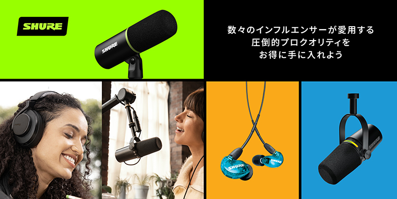 マイク製品では、XLR/USB Type-C接続両対応のダイナミック型マイク「MV7+」、エントリークラスのダイナミック型USBマイク「MV6」といった注目モデルがセール初登場となる。そのほか、受信機付き2チャンネルのクリップオン・ワイヤレスマイクロホン 「MoveMic Two」や、 USBゲーミングマイクロホン「MV6」とイヤホン「SE215 Special Edition」のセット品もラインナップされる。