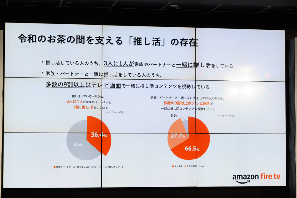 Amazonは、同社のストリーミングデバイス “Fire TVシリーズ” のさらなる充実に向けた取り組みや、今月発売となる国内初のサウンドバー製品「Fire TV Soundbar Plus」を披露する発表会を開催。「令和のお茶の間復活記念 家族で推し活」発表会と題し、独自調査で明らかになった上述のデータも公開した。