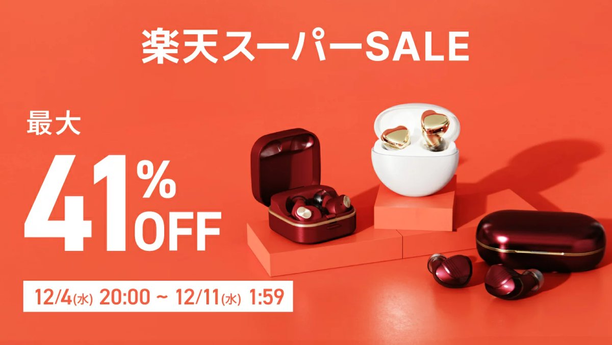 AVIOTは、現在開催中の楽天スーパーSALEにて、楽天市場で展開している公式ウェブショップで同社完全ワイヤレスイヤホンが最大41%オフになるセールを実施している。セール期間は12月11日(水)1時59分(10日深夜25時59分)まで。