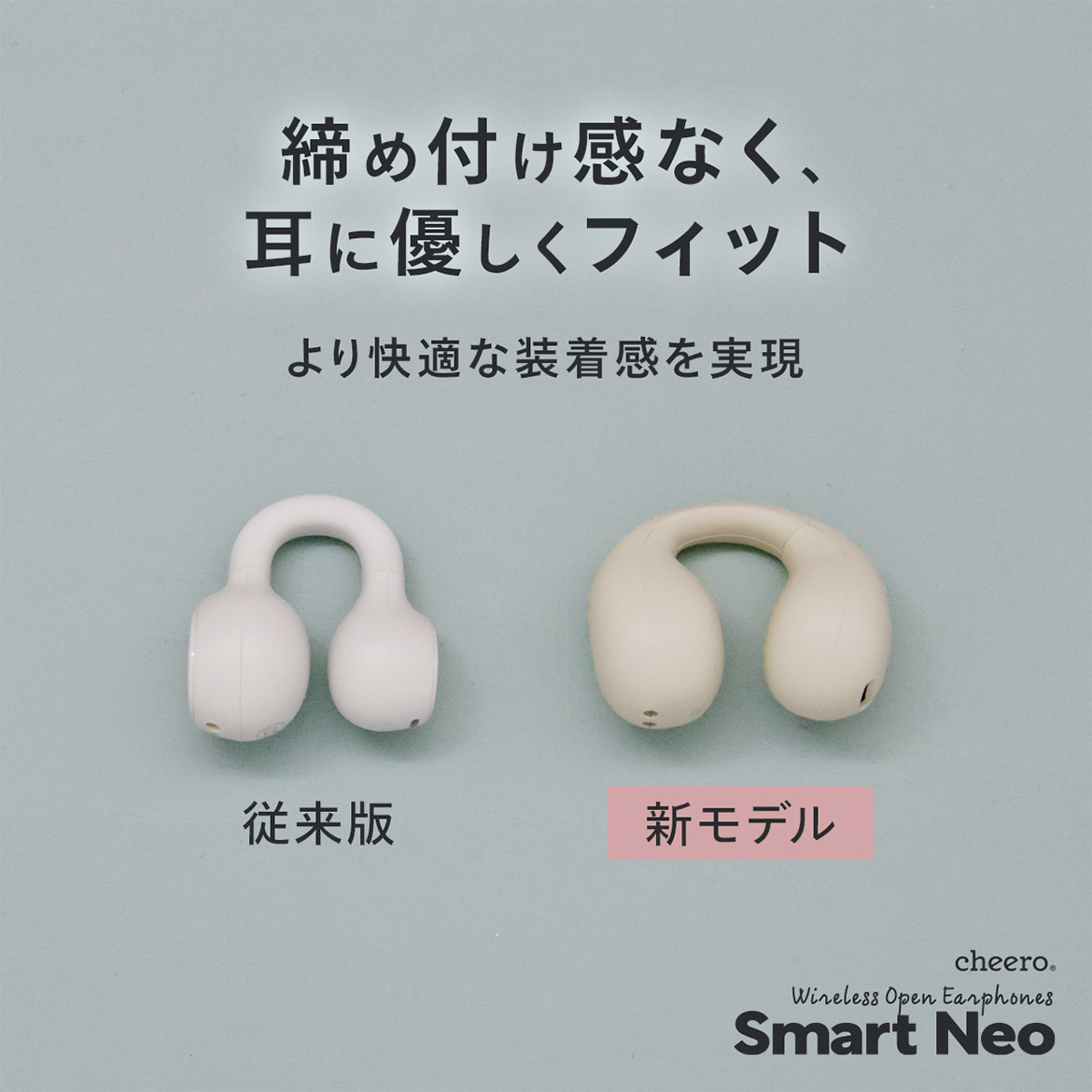 本機は、同ブランドから2023年10月に発売された「cheero Wireless Open Earphones Smart」を進化させたモデルで、ドライバーユニットには13mmの大口径ドライバーを搭載。従来よりクリアな音楽と通話を楽しむことができるという。