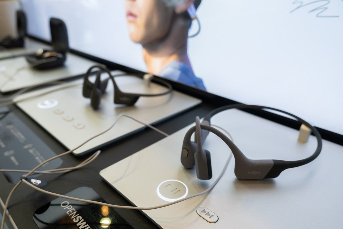 OPEN Run Pro 2だけでなく、MP3プレーヤー機能を備えた骨伝導ヘッドホン「OpenSwim Pro」、オープン型の完全ワイヤレスイヤホン「OpenFit」「OpenFit Air」といった他のラインナップも展示。これらのモデルを自由に試すことが可能だ。