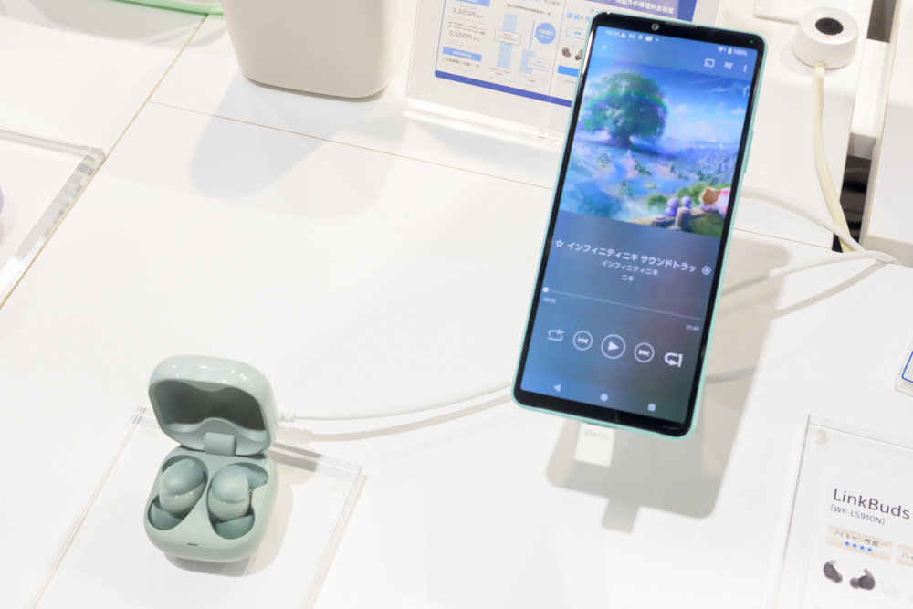 ゲーミングブランド “INZONE” 製品を使って『インフィニティニキ』本編を試遊したり、イヤホン/ヘッドホン、スピーカーで『インフィニティニキ』オリジナルサウンドトラックを試聴できるスペースも用意。試聴スペースでは、『ニキ』と同じようにケースの “着せ替え” が特徴の完全ワイヤレスイヤホン「LinkBuds Fit」がフィーチャーされていた。