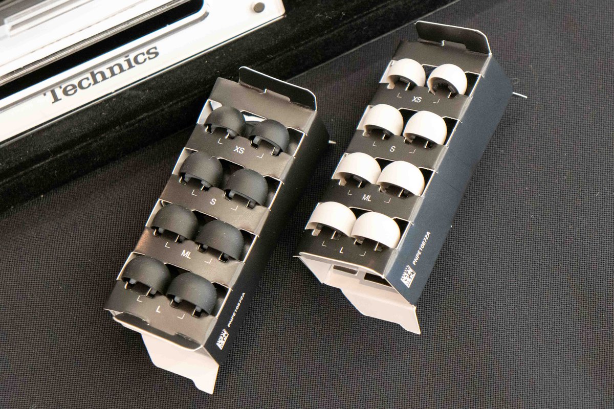 テクニクスブースでは、1月23日に発売された同社の新たなフラグシップ・完全ワイヤレスイヤホン「EAH-AZ100」が最大の目玉モデルとして、試聴機が多数並んでいた。EAH-AZ100がイベント展示されるのは、今回が初となる。