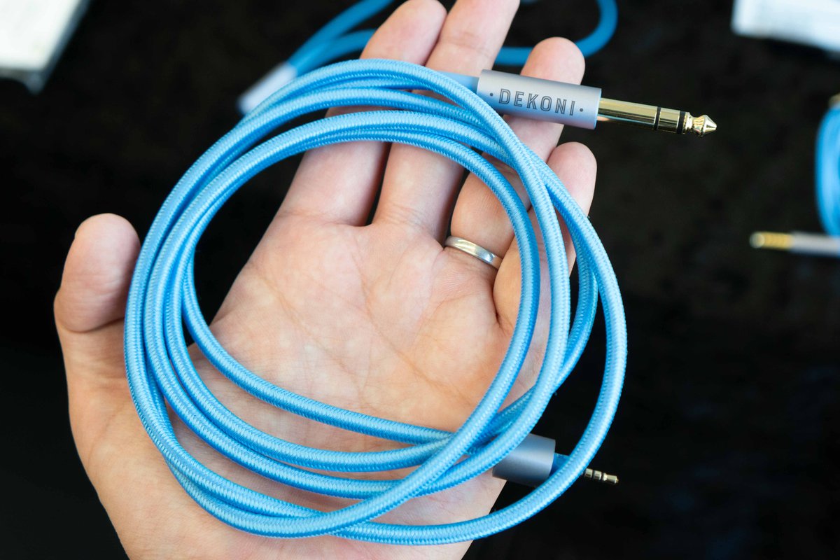 併せて、Dekoni Audio(デコニ・オーディオ)のヘッドホン用リケーブル「Ensemble Cables」も展示。「MCSテクノロジー」(モジュラー・ケーブル・システム)という仕様が採用されていることが特徴で、ヘッドホン側のモジュラー(Y-Split)とプレーヤーやアンプなどオーディオソース側のモジュラー(HP-Split)のふたつに分離させることができる仕組みになっているため、ユーザーの手持ちのシステムに合わせてそれぞれのモジュラーを自由に組み合わせることができることが魅力だ。