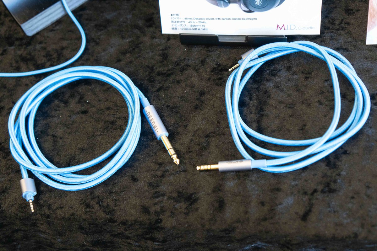 ヘッドホン側のモジュラーは3.5mm・2極ストレートプラグ/ゼンハイザー「HD600」用・2ピンプラグ/Mini XLR・4ピンプラグの3種類、オーディオソース側は6.3mm(アンバランス)/4.4mm(バランス)の2種類を用意。ケーブル材はヘッドホン側とオーディオソース側ともに、銅線(ブルー)/銀コート銅線(シルバー)をラインアップしている。オーディオソース側のケーブル長さは、約1.3m/約1.6mを揃えているという。