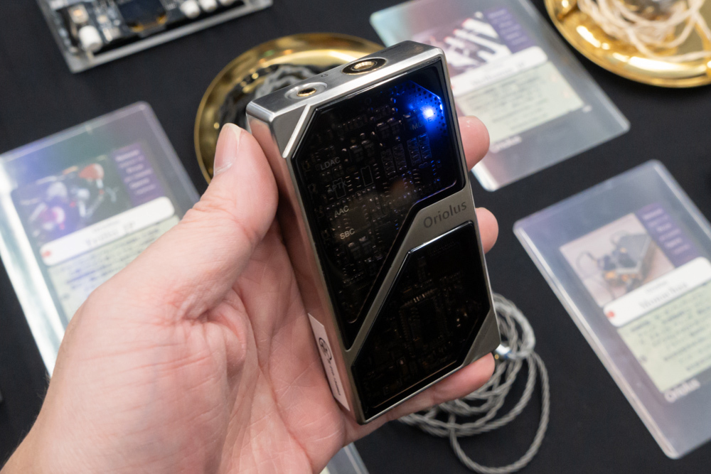 ほか、Oriolusブランドがエントリーモデルとして開発中だという2BAイヤホンや、透明窓から内部が見えるBluetoothアンプといった試作機が参考出展。また、新規取り扱いブランド・NiPO(ライポ)のフラグシップDAP「N2」(税込約41万円)の試聴機も用意されていた。