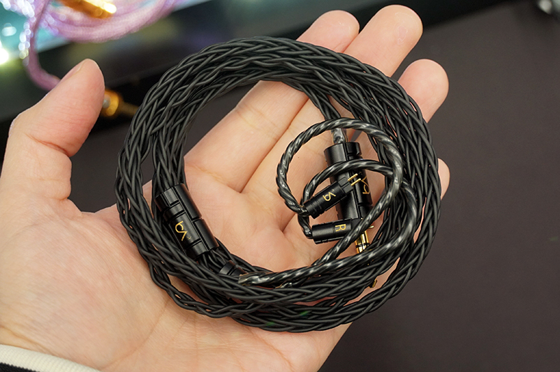 HiBy、Campfire Audio、Beat Audio、64 Audio、FAudio、Unique Melodyなどを取り扱うミックスウェーブのブースでは、まず未発表製品として、Beat Audioの試作ケーブル2種を用意。ブルーグリーン風カラーのモデルが100個限定、ブラックカラーモデルが300個限定というリミテッドモデルとなっているとのこと。詳しい製品詳細や発売時期等の詳細については確認中とのことだった。