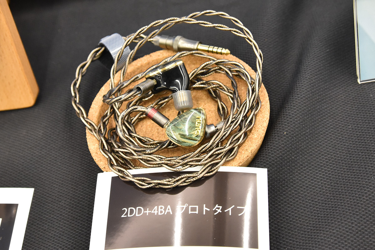 イヤホンでは、2DD+4BAのハイブリッド機プロトタイプを参考出展。プロトタイプにつき、シェル形状やフェイスプレートデザインも仮の物だという。また、名称は未定だが、同ドライバー構成の「VULKAN」の後継モデルとして開発を進めているとのことだ。