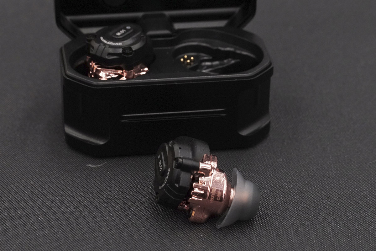 <ヘッドフォン祭mini>Acoustune、“分離型”TWS「HSX1001 Jin -迅-」の交換モジュールを参考出展/NAKAMICHI、スピーカーシステムから“ながら聴き”まで参考出展多数