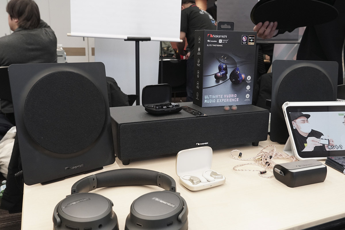 NAKAMICHIブランドの展示製品はいずれも夏前の発売を予定しており、スピーカーシステムが30万円前後、完全ワイヤレスが4万円前後、“ながら聴き”イヤホンが1万6 - 7千円くらい、ノイズキャンセリングヘッドホンが2万円前後での実売が予想されるという。