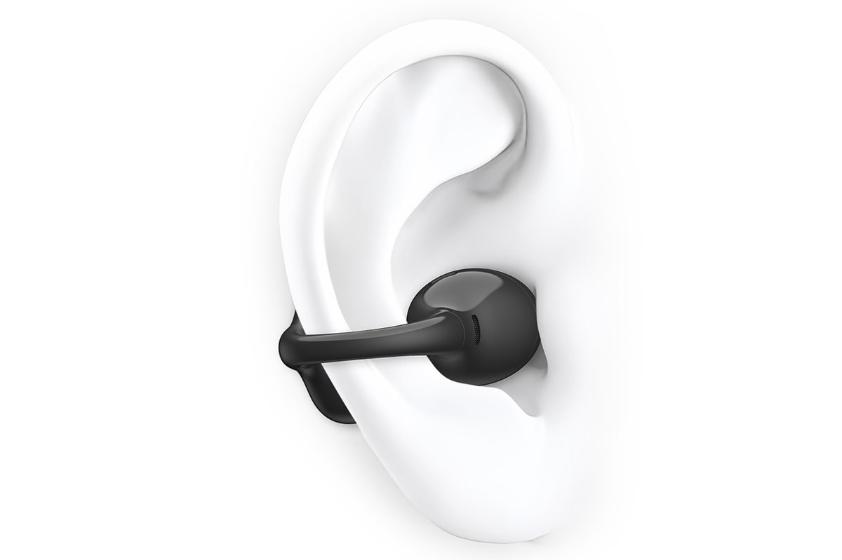 外耳を挟み込み固定するイヤークリップ型を採用した完全ワイヤレスイヤホン。音楽とともに周囲の音が耳に入る構造で閉塞感や密閉感がなく、ランニングなど屋外での使用も安心・安全だとアピールしている。フック部の曲率に工夫を施すなどしてフィット性を追求しており、長時間快適な装着感で利用できるという。現時点でカラーはブラックのみだが、ホワイトモデルが近日発売されるとのこと。