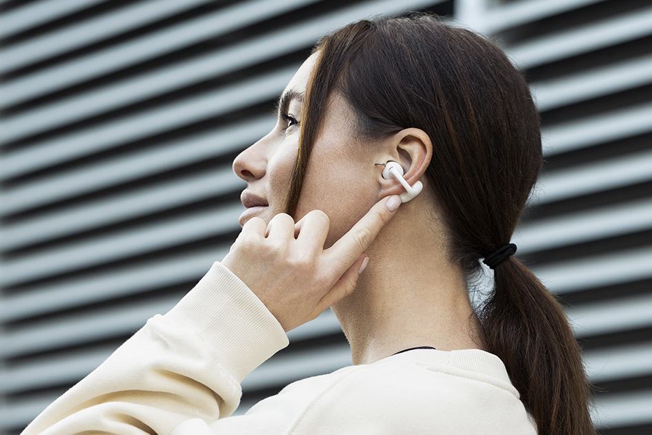 操作面では、耳からの着脱を検出して自動的に音楽を再生/一時停止する装着センサーを装備。さらに、状況に応じて左右チャンネルを再設定する「インテリジェントオーディオチャンネル検出」にも対応し、充電ケースから出し入れする際に左右を気にする必要がないとしている。