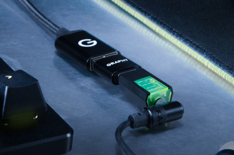 GRAPHT MINI DAC for GAMINGは、超小型デザインかつバスパワー駆動式のUSB-DAC内蔵ヘッドホンアンプ。USB Type-C入力と3.5mm 4極ミニ出力を備え、PCM 384kHz/32bit、DSD128(DoP)までの再生をサポート。内蔵DACチップにより音質を高めて、ゲームサウンドや音楽などの再生環境をアップグレードさせると謳っている。