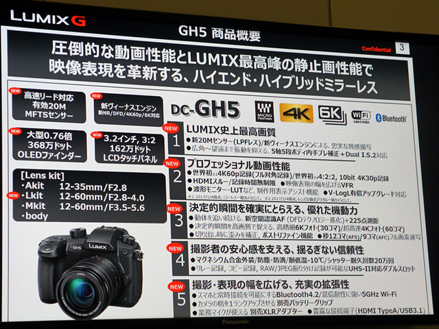 「現行機のDMC-GH4を出して以来、ビデオフォトグラファーににヒアリングして必要とされる機能を今回すべて入れた」としている。