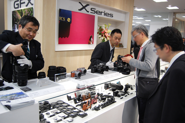 (2)ミラーレスデジタルカメラ「Xシリーズ」「GFXシリーズ」や交換レンズを手にとって体験できる「タッチ&トライコーナー」。専門の説明員がアドバイス・説明してくれる