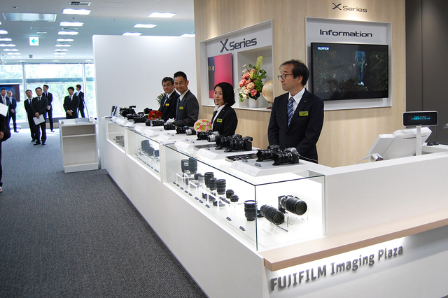 そして「人生において決定的な瞬間、ハレの瞬間、どうしても残しておきたい瞬間を、いつまでも美しくとっておきたい想いは、老若男女、万国共通の人間の感情です。それはまた素晴らしい、人間にとって大事な文化もあり、また、写真は芸術でもあります。私ども富士フイルムはこの素晴らしい写真を全力をあげて支えていく所存です。21世紀にデジタルカメラが席巻し始めた時、続々と辞めるメーカーやつぶれるメーカーが出る中で私は宣言しました。富士フイルムはパトロンとして永久に写真を支え続けると、偉そうなことを言いましたがそれを実践してきたつもりでありますし、これからも実践していきます。この新しいサービスセンター、FUJIFILM Imaging Plazaにどうぞご期待ください」と力強くあいさつを締めくくった。
