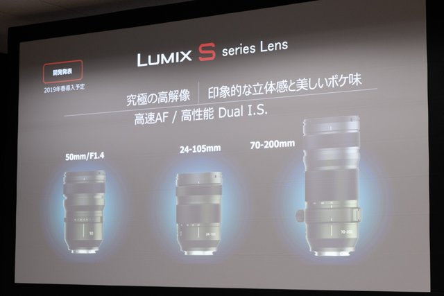 今年9月発表された「S1R」「S1」は、LUMIXとして初めてフルサイズセンサーを使用したモデルで、“LUMIX Sシリーズ”という名称が付けられている。レンズは「50mm/f1.4」「24-105mm」「70-200mm」がまず予定されており、本体・レンズともに2019年春の発売が予定されている。