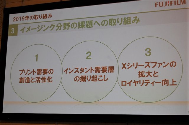 3つ目は「Xシリーズファンの拡大とロイヤリティー向上」。高画質と機動力のベストバランスを誇るAPS-Cの「Xシリーズ」、スーパーフルサイズで圧倒的な高画質を実現する「GFXシリーズ」、両輪の魅力をユーザーにダイレクトに訴える。「レンズを含めた当社デジタルカメラのラインナップをさらに充実させ、幅広いお客様が満足してもらえるような取り組みを行っていく。丸の内の富士フイルムイメージングプラザや全国各地で展開するXキャラバンでのアフターメンテナンスの充実、富士フイルムのWEBやSNSはもちろん、全国各地でのセミナーや撮影会でのユーザーへの情報発信、活用提案を積極的に行っていきたい」と顧客接点の一層の強化を訴えた。