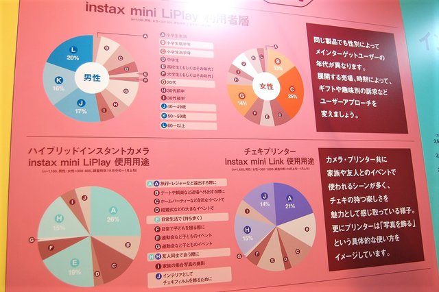 一方、展示コーナーにおいても、撮影ビジネスや写真ビジネスを活性化する富士フイルムの多彩な製品やサービスを紹介。「インスタント体験とビジネス提案」コーナーでは、ハイブリッドタイプの “音チェキ”「instax mini LiPlay」とプリンターの「instax mini Link」を前面にアピールした。