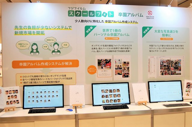 「スクールフォトとコンテンツビジネス」コーナーでは、少人数向けに特化した卒園アルバム作成システムをクローズアップ。卒園アルバムがない園も少なくなく、先生の負担を軽くするシステムで新規市場の開拓を提案する。大変な写真選びも、アルバムに掲載された写真にどの園児が何枚写っているかを園児ごとに確認できる機能「いない子だれGUI」で強力サポート。