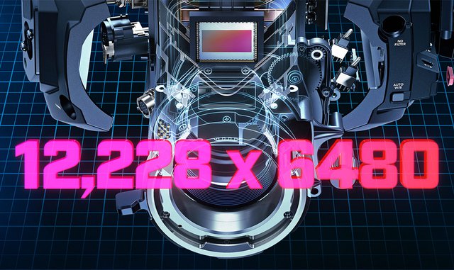 撮像素子には、ネイティブ解像度12,288×6,480の12Kスーパー35センサーを搭載する。14ストップのダイナミックレンジ、ネイティブISO800に対応するほか、80メガピクセル/フレームで最大60fpsの撮影が可能。12Kで60fps、8Kで110fps、4K スーパー16で220fpsまでの撮影が行える。